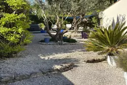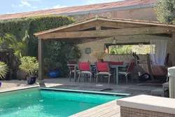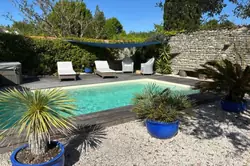 Le jardin méditerranéen exposé Sud - Ouest prolonge les espaces de vies avec une piscine de (7.90 x 3.50), un jacuzzi, deux terrasses en bois exotique, un préau carrelé avec sa charpente en bois apparente, un abri bois, une cave, un puits et deux places de stationnement.