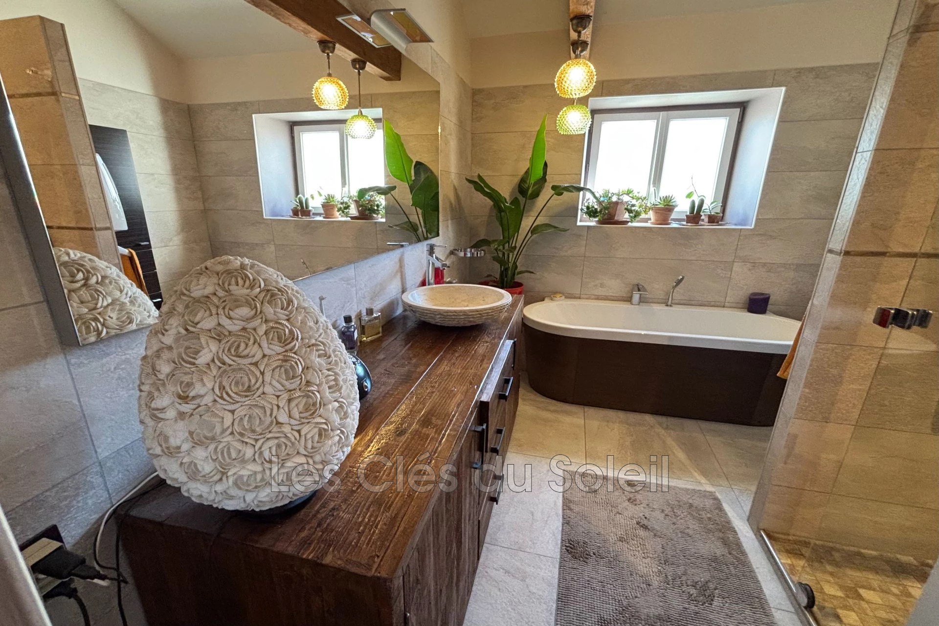 - Une salle de bain avec baignoire et douche à l'italienne